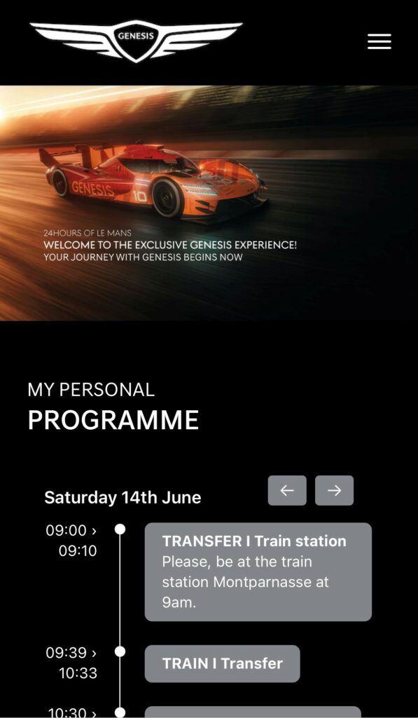 Orchestration de l’expérience invités Genesis Motor Europe lors de leur première participation aux 24H du Mans